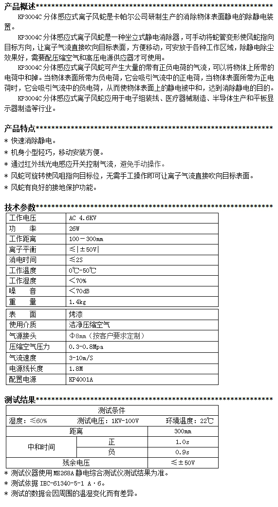 KP3004C第三代分體感應式離子風蛇